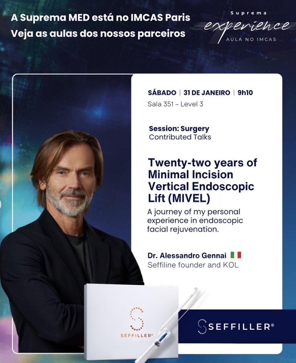 Essere speaker all’IMCAS significa confrontarsi con i migliori specialisti del settore e condividere protocolli di sicurezza e innovazione. Oltre alla chirurgia endoscopica, il Dott. Gennai è riconosciuto a livello internazionale come fondatore di Seffiline, la linea dedicata alla rigenerazione cellulare tramite le cellule staminali autologhe (tecnica SEFFILLER®), un altro pilastro fondamentale del suo approccio alla medicina rigenerativa.